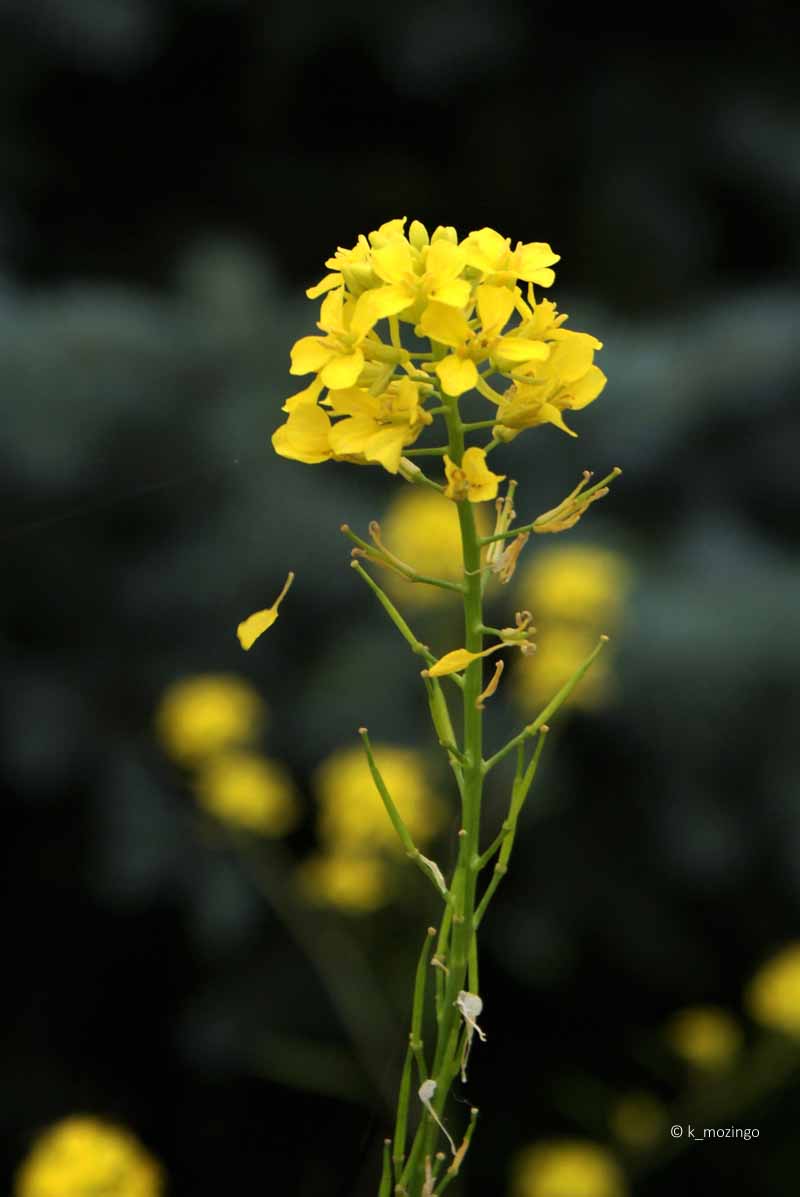 Kendall County (IL) Forest Preserve District Field Mustard (Rape Mustard) The non-native (Eurasia) Field Mustard prefers full sunlight, moist to dry conditions and soil containing loam or gravelly material. Habitats include cropland, weedy fields and gravelly roadsides. This annual or biennial is 1-3' tall with much branching in the upper half. Plants that emerge in the fall develop low rosette with basal leaves, while plants that emerge in the spring bolt upward almost immediately. Both the basal and lower leaves can be up to 10" long and 2" across. The upper alternate lance-shaped leaves are smaller and clasp their stems. The upper stems terminate in racemes of bright yellow flowers 1/3–1/2" across with 4 petals.