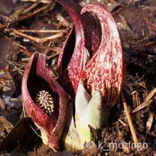 Symplocarpus foetidus Blooms Mid-February - March Prefers part sun to light shade, wet to moist soil Wildflower (common)