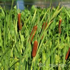 Typha angustifolia Blooms June - mid-July Prefers full sun, wet to moist soil Aquatic (common)