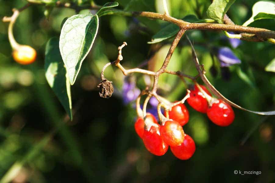 often Bittersweet Nightshade at Richard Young Forest Preserve (woods edge) August 3, 2012 Bittersweet Nightshade at Silver Springs State Park July 17, 2015 Bittersweet Nightshade sprawling colony at Silver Springs State Park July 17, 2015 The foliage exudes a rank bitter odor, particularly when the leaves or stems are damaged. Bittersweet Nightshade poisonous berries at Richard Young Forest Preserve (woods edge) August 3, 2012 Each flower is later replaced by a shiny little fruit, initially green, but later turning yellow, orange, and finally bright red. Warning: the fruit is poisonous. The red berries (fruits) can be toxic to humans and should not be eaten. But the toxin Atropine is valuable to eye doctors for its power of dilating eye pupils. See Do Not Disturb Notice. Click here for more information. Copyright © 2011-2017 by Kendall County Forest Preserve District. All Rights Reserved. |