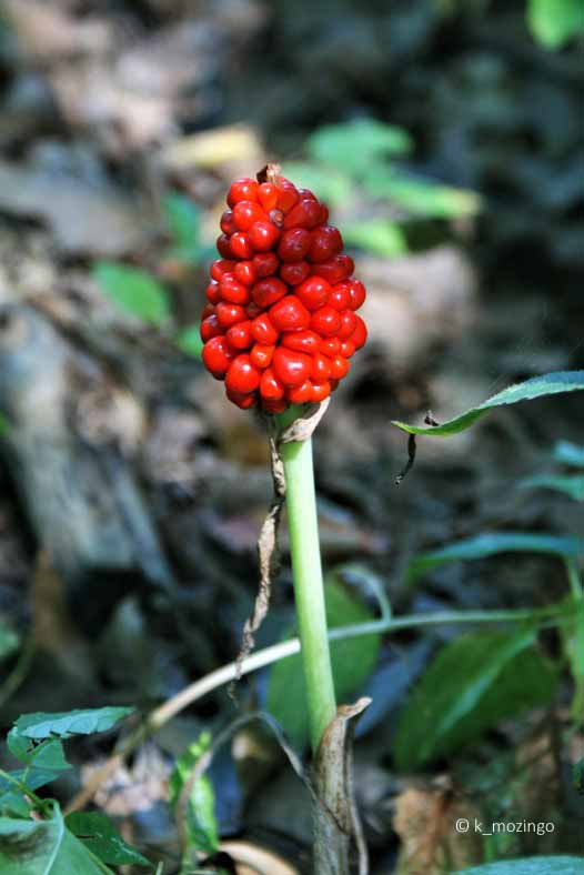 Jack-in-the-Pulpit berry cluster at Richard Young Forest Preserve August 29, 2012 Each fertilized flower develops into a fleshy red berry about ¼" across. Collectively, these berries form an ovoid cluster up to 2" long.
