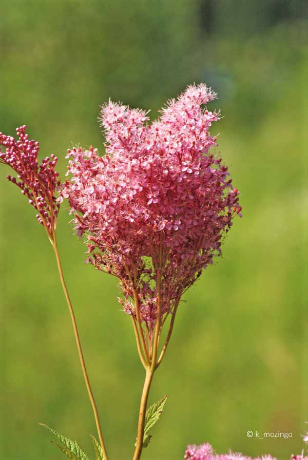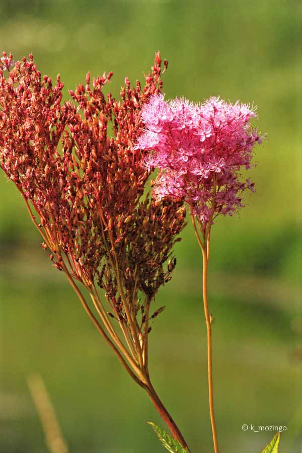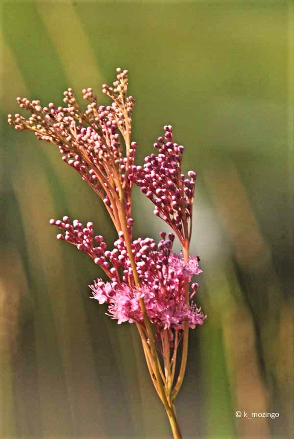 Queen-of-the-Prairie The royal native Queen-of-the-Prairie is rare in our area. It is on the Illinois Threatened Species List and is monitored as one of our Plants of Concern. It prefers full or partial sun and wet to moist soil high in organic content. Habitats include moist black soil prairies, moist meadows along streams or ponds and wet areas in or around seeps and fens. It is a perennial, 3-6' tall, unbranched with a smooth reddish central stem with alternate compound leaves. The leaves are up to 2' long, each having 1-7 palmately-lobed leaflets up to 6" long and aligned along the stem in succession. The central stem terminates in a panicle of pink buds and flowers about 5-8" across. Each flower is about 1/3" across, consisting of 5 pink petals and numerous long white stamens with pink anthers. The overall appearance is like wind-tossed fluff or foam, and is quite beautiful.