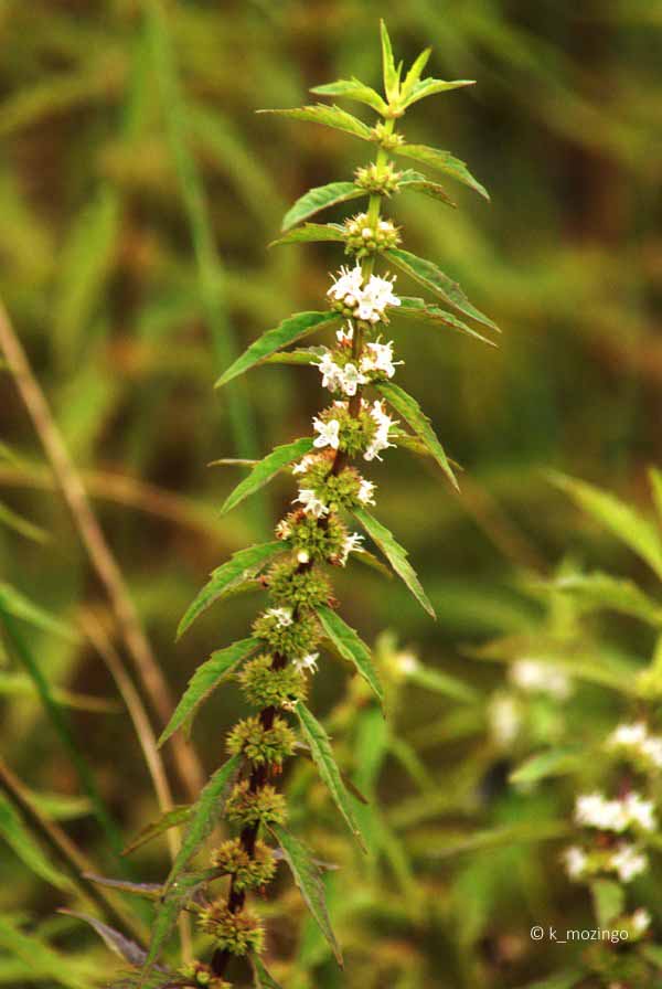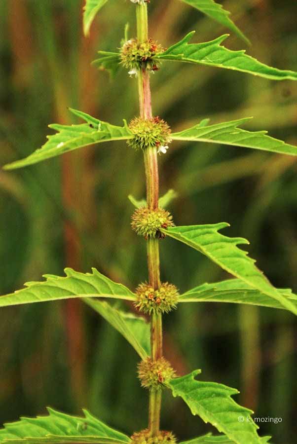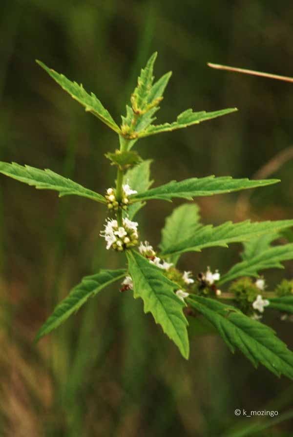 Kendall County (IL) Forest Preserve District Common The native Common Water Horehound is common in our area. It prefers partial to full sun and wet to moist conditions such as wet prairies, wetlands and fens. This small perennial is 1-3' tall, usually unbranched, with an erect square central stem with pairs of opposite deeply-toothed leaves about 2-4" long and ½-1½" wide. Dense clusters of tiny white mint blossoms are whorled around the central stem at the leaf axils.