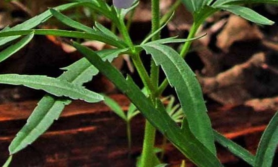 (Pepper Root) The native Cutleaf Toothwort is a common early spring woodland flower in our area. It grows in the dappled sunlight under trees before they leaf out and prefers moist to slightly dry rich soil with decaying leaves. This perennial is about 3-10" tall, producing from its rootstock basal leaves and a single flowering stalk with a whorl of 3 leaves. Each leaf is up to 3" long and across with 3-5 narrow shaprply-tipped lobes with deep teeth along the margins. The stalk terminates in a cluster of white flowers on stems with a floppy appearance. Each flower is about ½" across with 4 white petals.