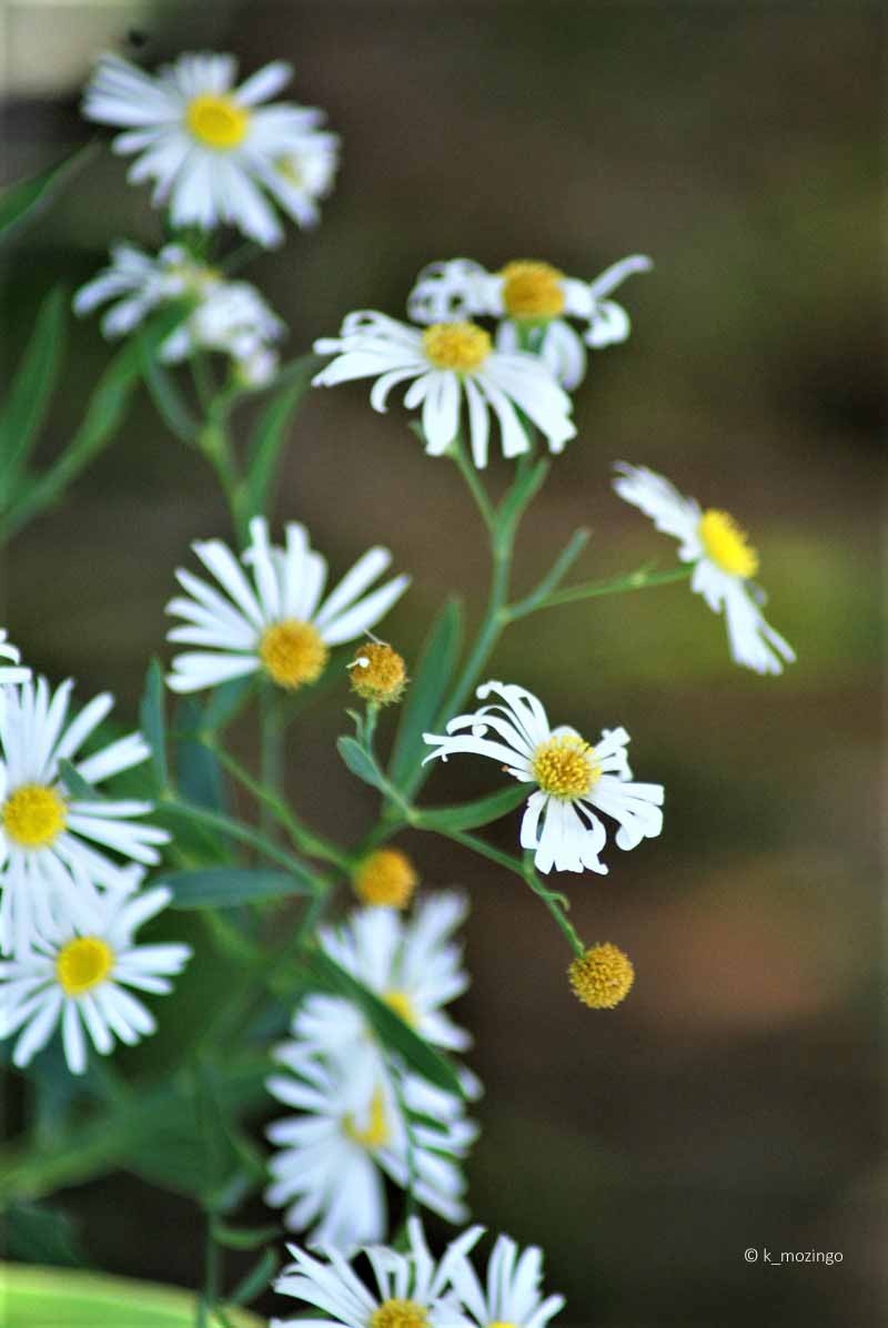 (White Panicle Aster) The native Panicled Aster is common in our area. It prefers full to partial sun and moist conditions. Habitats include disturbed areas of moist prairies, openings and edges of floodplain woodlands, moist meadows along rivers, edges of marshes and seasonal wetlands. This perennial is 1–3½' tall and branching occasionally. Alternate leaves, up to 5" long and ¾" across, lance-shaped and toothless, occur along the entire length of the stems, becoming gradually smaller in size as they ascend. The central stem terminates in a panicle of white flowers up to 8" long and 4" across. Each daisy-like flower spans ½–¾" across and consists of 20-40 white ray florets that surround a dense head of numerous disk florets initially yellow, but later becoming orange-red.