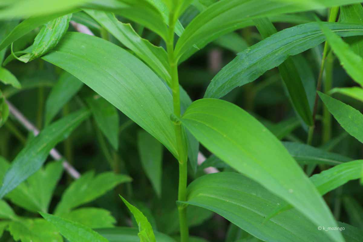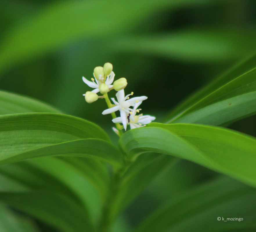 Starry False Solomon's Seal The native Starry False Solomon's Seal is common in our area. It prefers moist to slightly dry conditions and partial sunlight. Habitats include moist meadows in woodland areas, woodland borders, sandy riverbanks and semi-wooded slopes. This perennial is 1-2½' tall and unbranched with a central stem that is stout, smooth, zigzags slightly, and usually reclines to the side. The alternate leaves are narrowly oval with parallel veins and smooth margins and up to 6" long and 2" across. The central stem terminates in a panicle of small white flowers. Each star-like flower is about 1/3" across with 6 narrow white tepals.