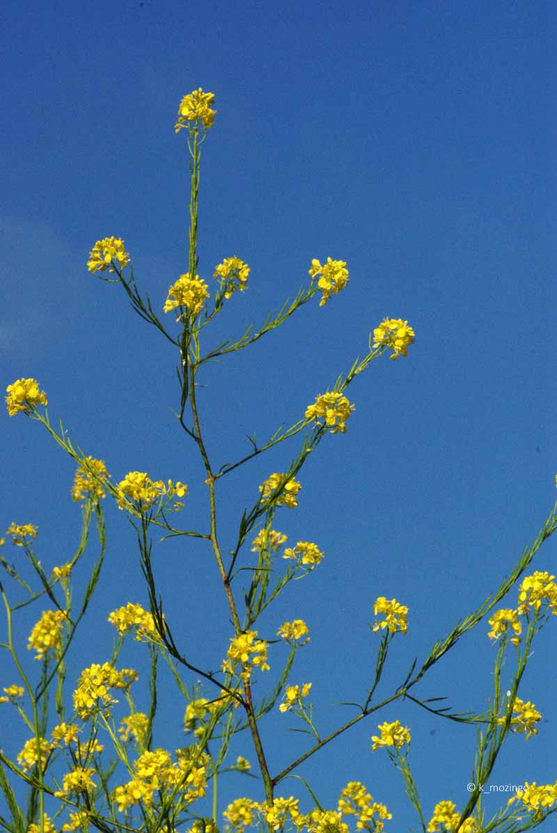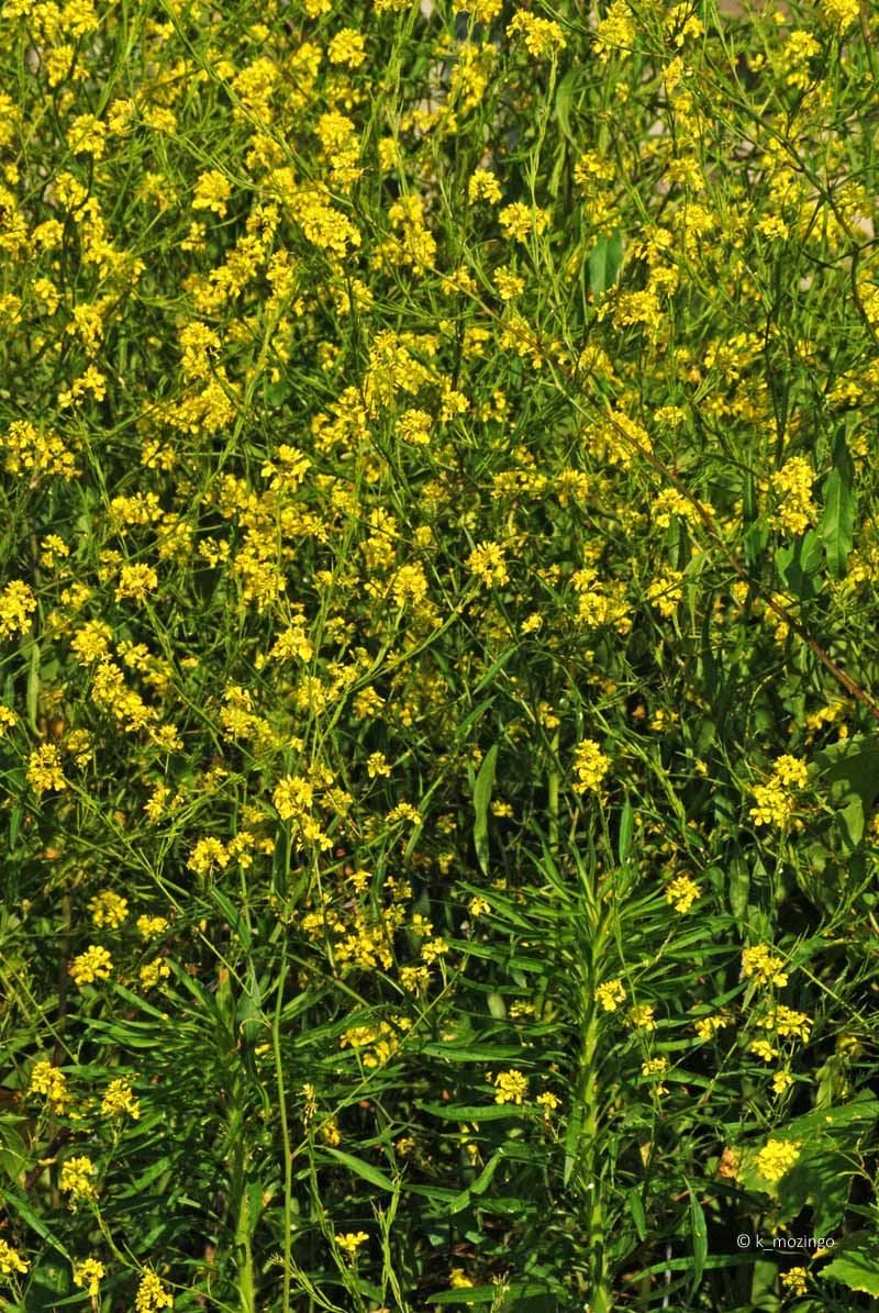 Black Mustard The native Black Mustard is very common in our area. It prefers full or partial sun and slightly dry fertile soil. Habitats include weedy meadows, thickets, areas along roads and waste areas. This annual becomes 2-8' tall, branching occasionally with alternate leaves are up to 10" long and 3" across. The lower leaves are pinnately-lobed and tapering to a long stout petiole. The upper stems terminate in narrow ½–2' long racemes of yellow flowers. Each flower is up to 1/3" across with 4 yellow petals that are well-rounded toward their tips.