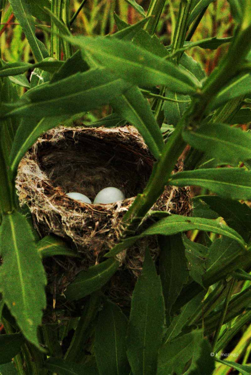 Nest of Common Yellowthroats in middle of Common Sneezeweed at Subat Forest Preserve wetland August 26, 2015
