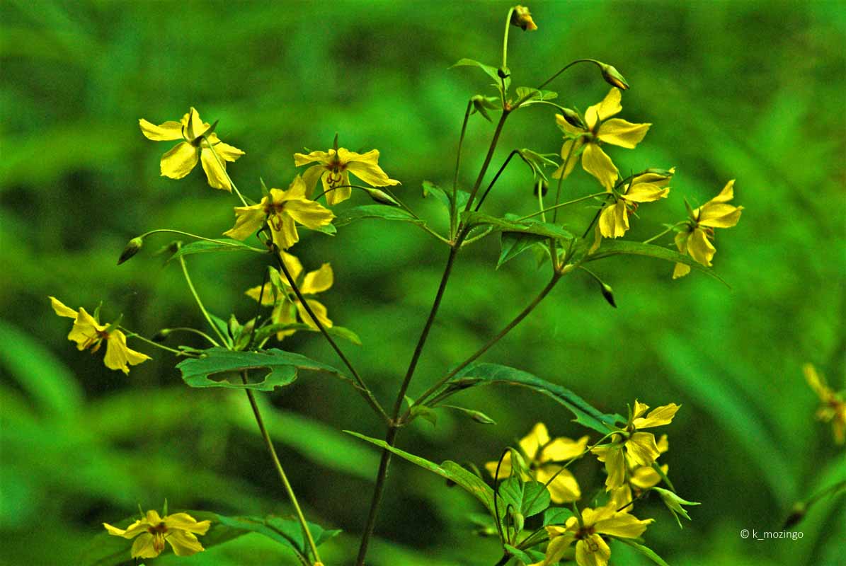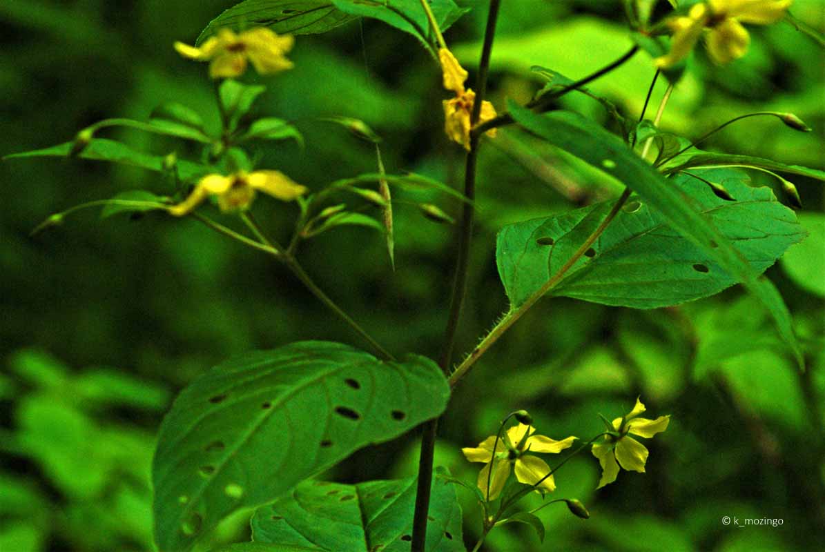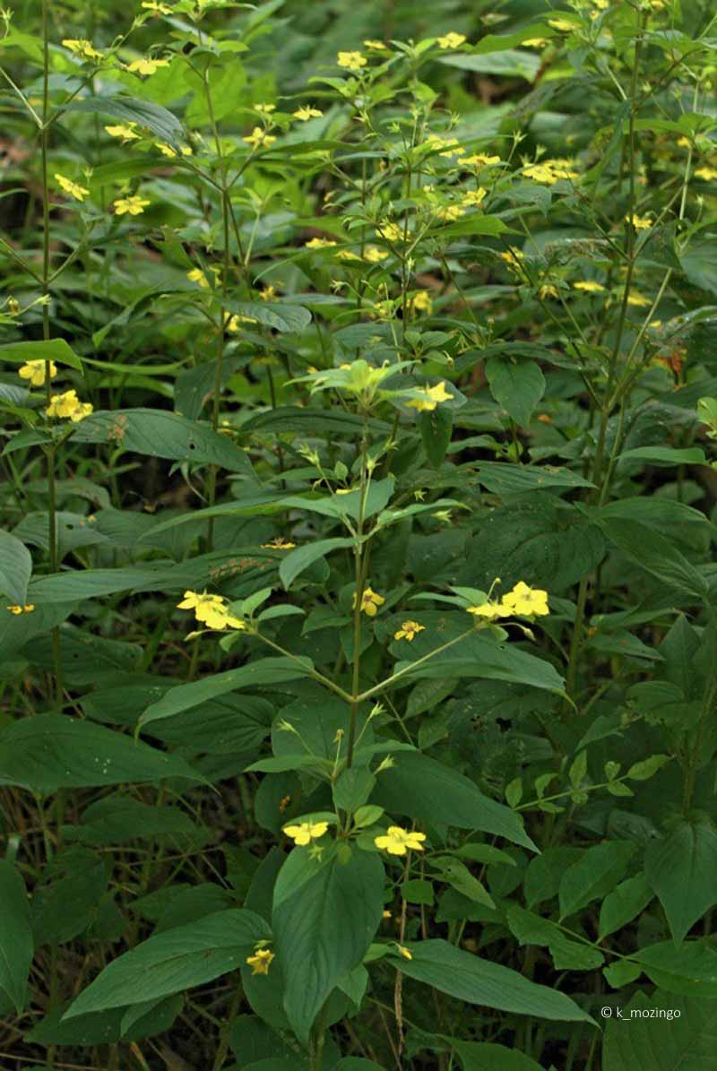 Fringed Loosestrife The native Fringed Loosestrife is uncommon in our area. It prefers full sun to light shade, wet to moist conditions, and a fertile loamy soil with organic matter. Habitats include moist to wet areas of deciduous woodlands, swamps, soggy thickets, wet prairies, marshes, seeps, fens and borders of streams. This perenniall is 1-4' tall, mostly unbranched with an erect central stem. Pairs of opposite leaves occur at intervals along the stem. The leaves are up to 6" long and 2½" across, lance-shaped, and toothless on petioles up to 1½" long. Along the axils of the middle to upper leaves, individual flowers occur on pedicels up to 3" long, usually nodding downward. Each flower is ½–1" across with 5 widely spreading yellow petals tapering to slender pointed tips.
