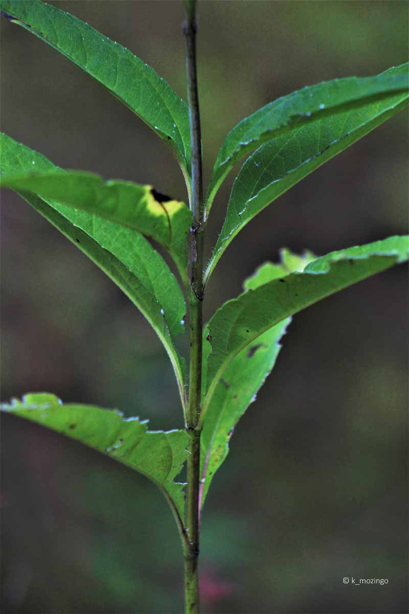 light green to reddish brown hairy stems. Alternate leaves (up to 9"
