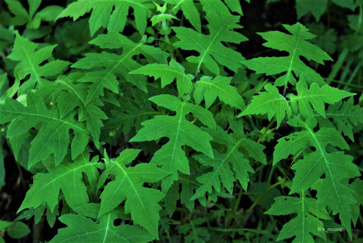 (Whiteflower Leafcup) The native Leaf-Cup is uncommon in our area. It prefers light to medium shade and moist to slightly moist loamy soil with abundant organic matter. Habitats include rich deciduous woodlands, upland rocky woodlands, bases of bluffs, shaded moist ravines and shaded areas along streams. This biennial (or short-lived perennial) is about 1½–4½' tall, branching occasionally with erect to ascending stems densely covered with long hairs. The leaves are up to 12" long and 8" across on petioles up to 4" long, becoming gradually smaller as they ascend the stems. The lower to middle leaves are lobed (5-7) with pointed tips. Small cymes of flowers develop from the upper stems and the axils of upper leaves. Each flower is about ½" across, consisting of several yellow disk florets in the center and cream-colored ray florets (5-8) around its circumference.